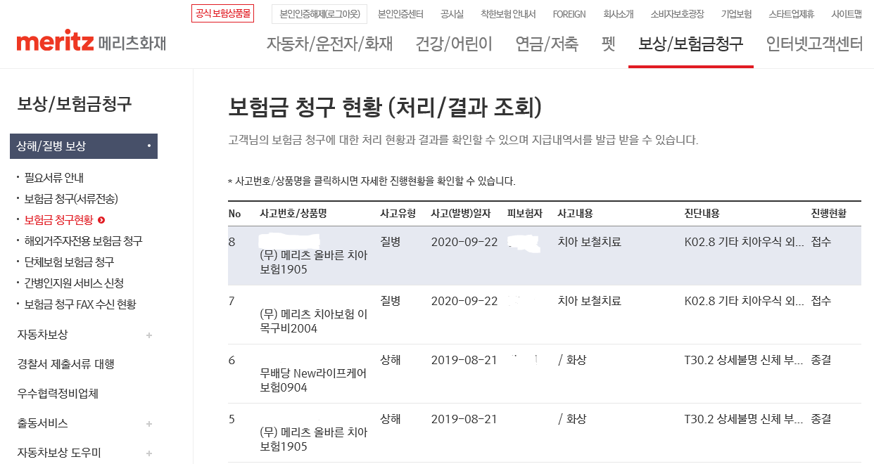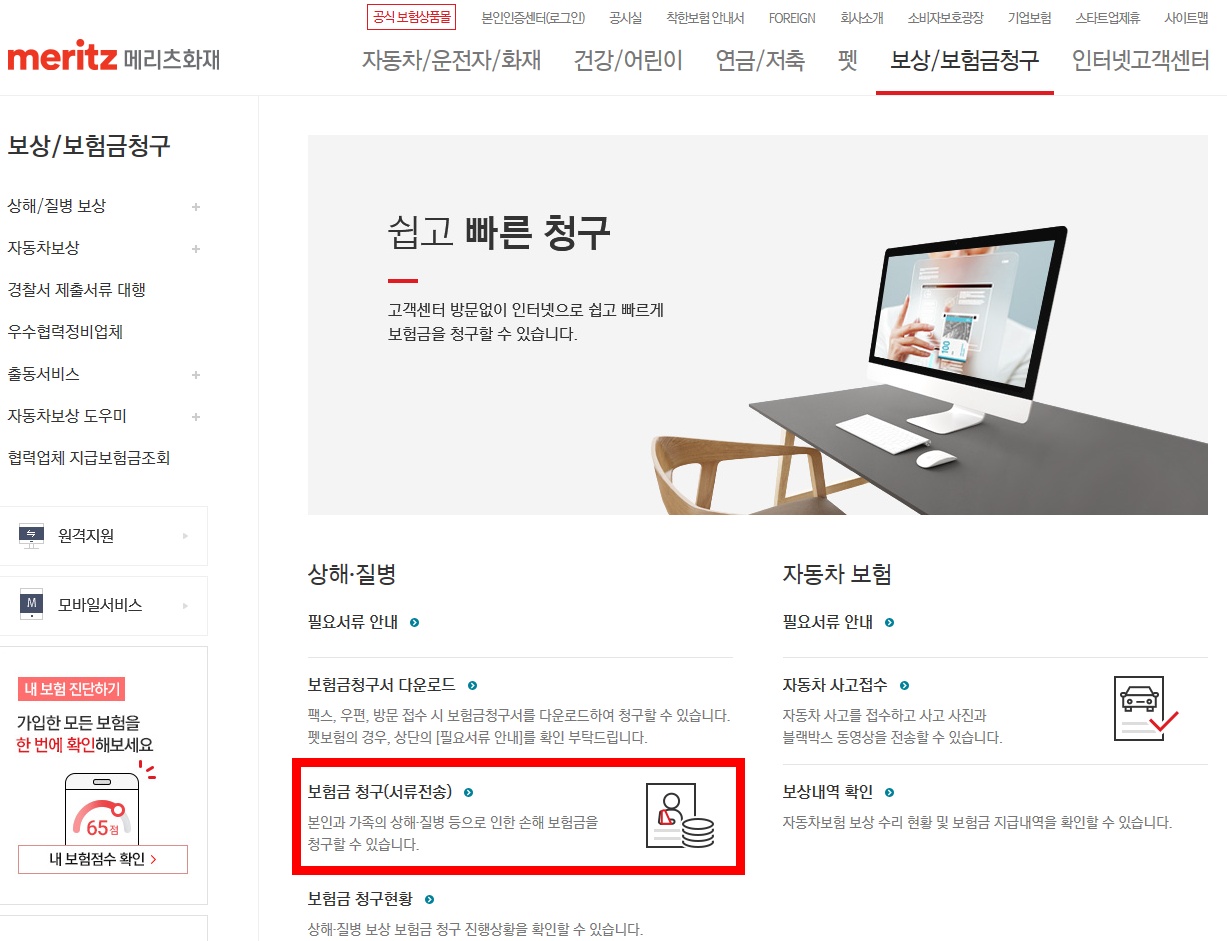메리츠화재 보상/보험금 청구하기